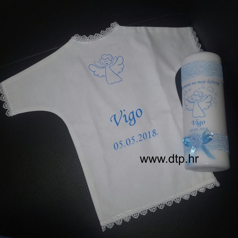Oznake: komplet za krštenje, Krsna košuljica i svijeća za krštenje