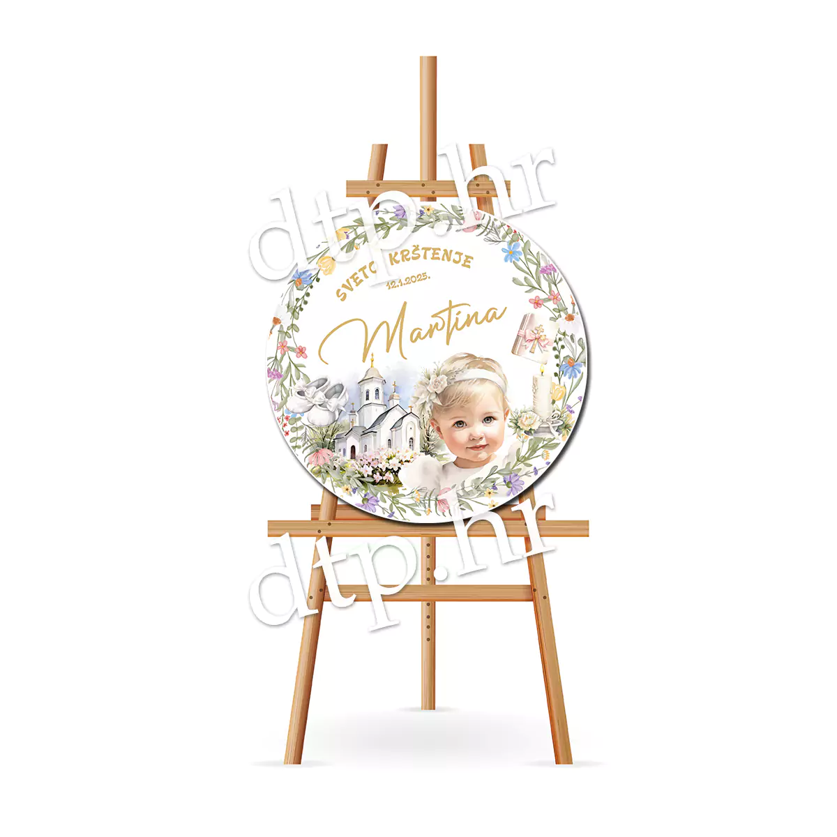 Dekorativni krug za krštenje promjera 60 cm izrađen je od najkvalitetnijih materijala, prilagodljiv prema vašim željama.