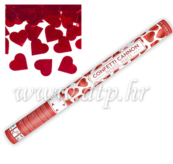Top konfeta za ručno ispaljivanje dužine 60 cm. Metalizirana srca lete u visinu 5-8 metara.