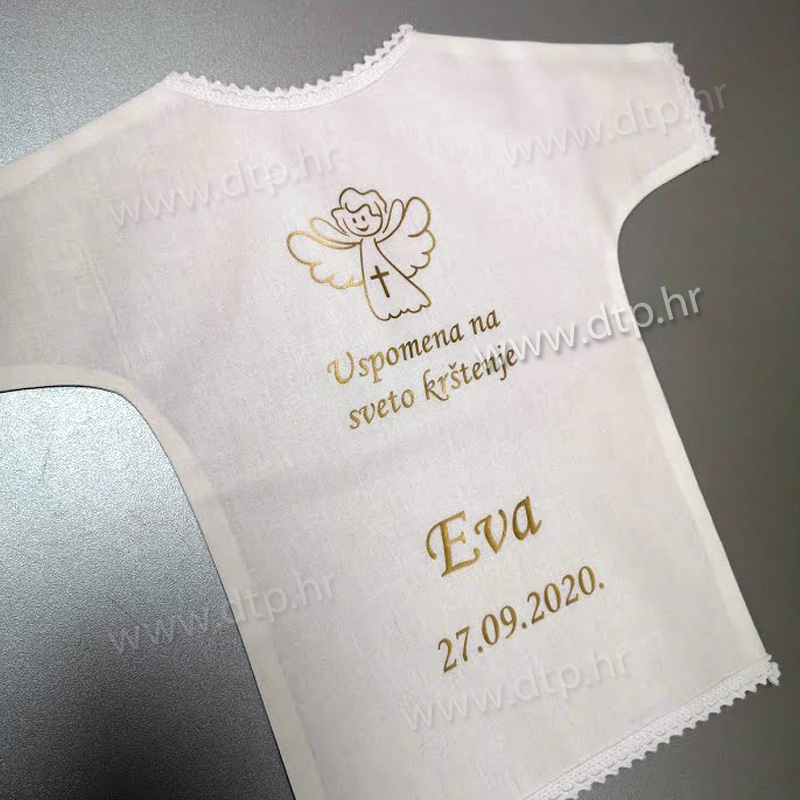 Krsna košuljica: 100 % pamuk – ne oblači se već se samo prilikom krštenja prisloni na dijete