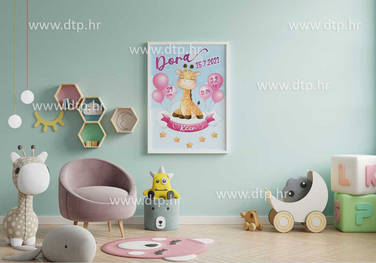 Poster žirafa personalizirana ilustracija za dječju sobu